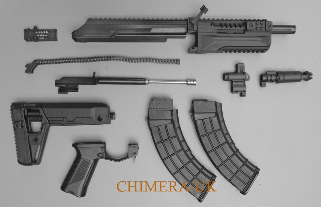 receiver (£12) + 6-8 hours of labour including the use of lathe in order to reduce the barrel width in 3 places, which requires the barrel to be taken off - £300. A real AK47 magazine filled with five 7.62mm inert rounds fits prefectly, but it is optional (£37). Essentially we build "deactivated" AK-15 rifles with all moving parts, which are BB air rifles at the same time. They are cheaper then old spec deacts (!) and suitable for firearms training. A power upgrade comes as