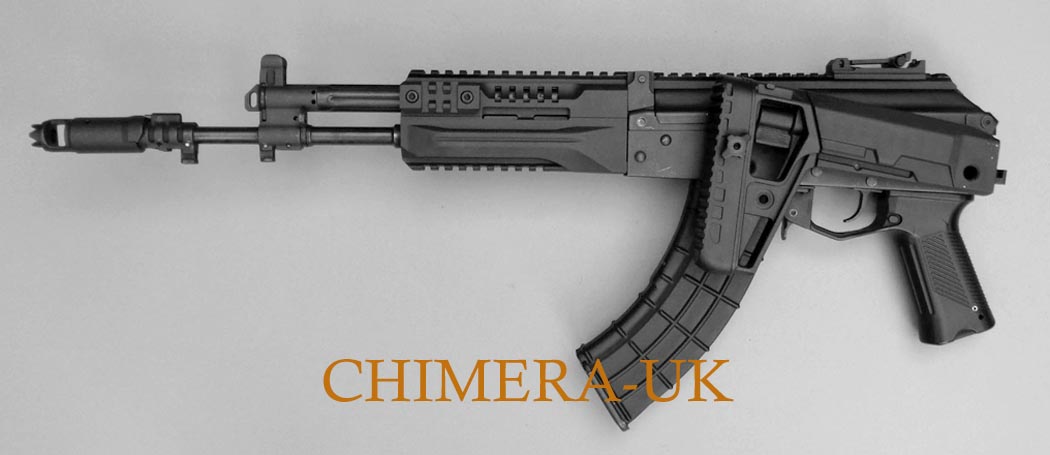We remove "fake" alloy / steel parts from the original CyberGun and replace them with all new solid STEEL parts including a dust cover with Picatinny rail hinged to a front trunnion (£99), removable rear sight (£60), front sight block and flash hider (£169), hand guards with gas tube (£108), pistol grip (£29), Serbian Zasatava AK47 magazine (£35) and its convesion (£36), a so-called "full-auto" trigger pin to plug holes in the