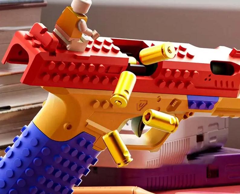 This colourful soft plastic bullet toy gun combines fun and creativity with its building block frame compatible with standard LEGO blocks. Featuring semi-auto fire mode, mag-fed blowback action, last round slide stop and shell ejection for each shot. It offers an exciting play experience with a 6-round magazine and a shooting range of up to 10 meters. Soft Polymer bullets (20 pcs included) are to be pre-loaded in each individual plastic case. This toy gun is ideal for adults too after a few beers over a family BBQ this summer..